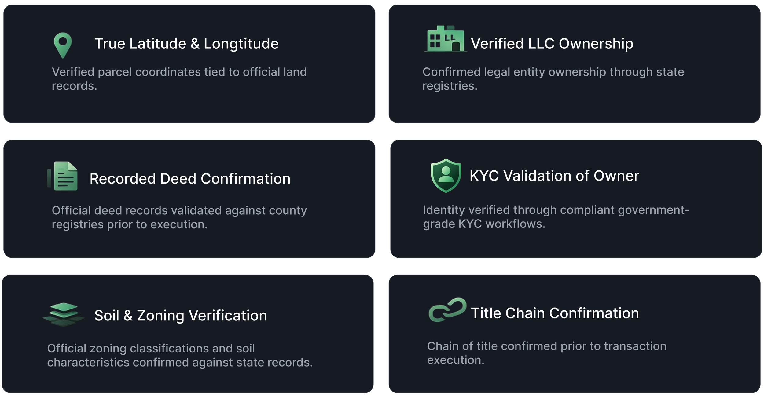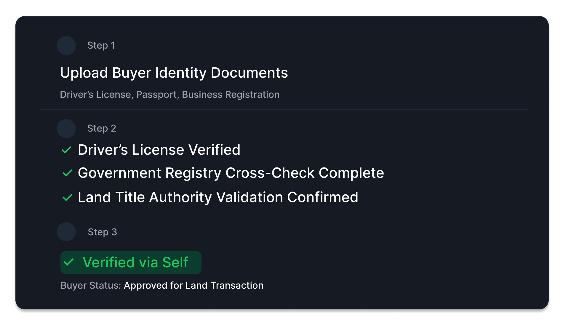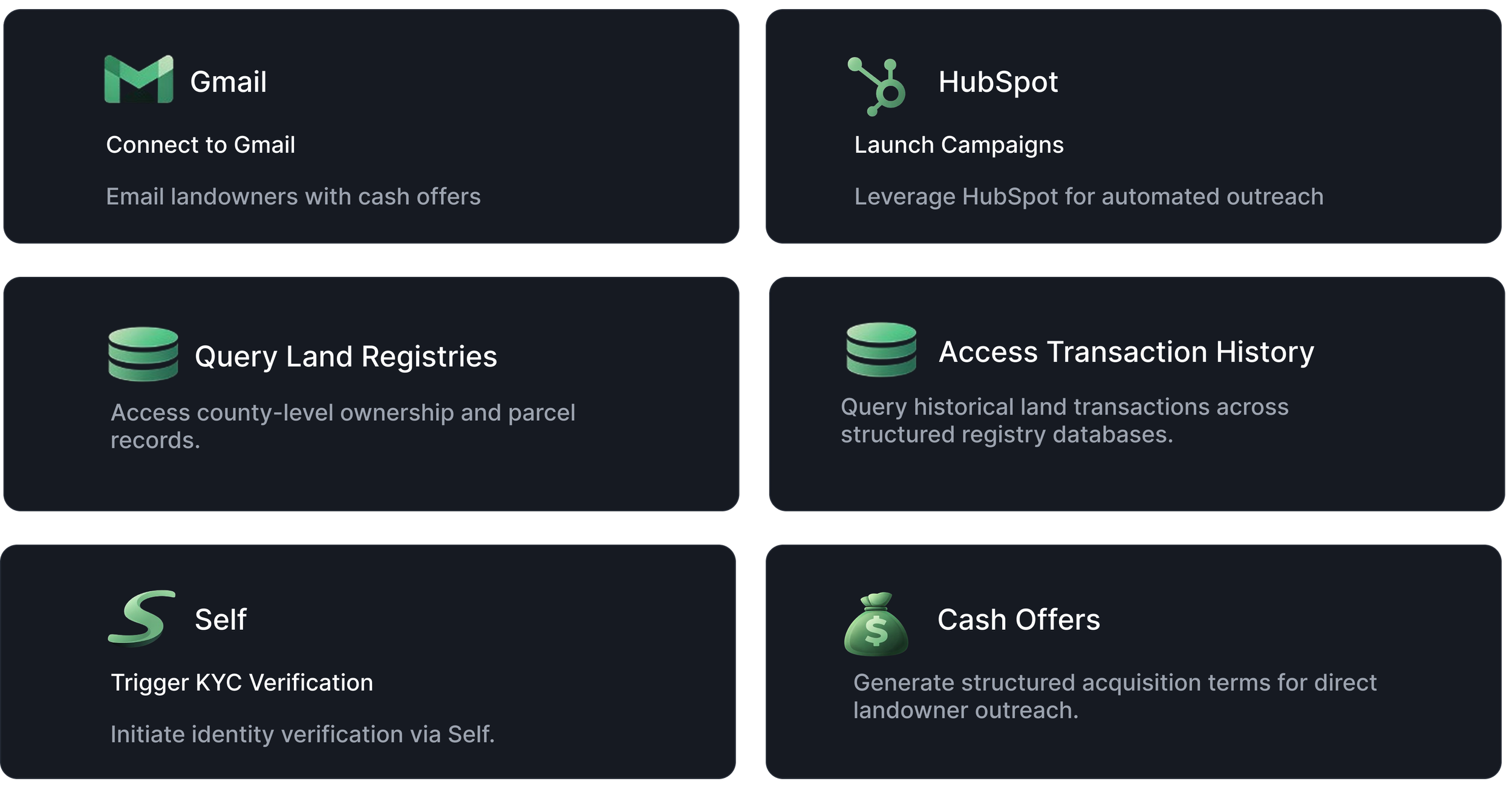 Enables autonomous land acquisition in agriculture — with agents operating on verified human identity.